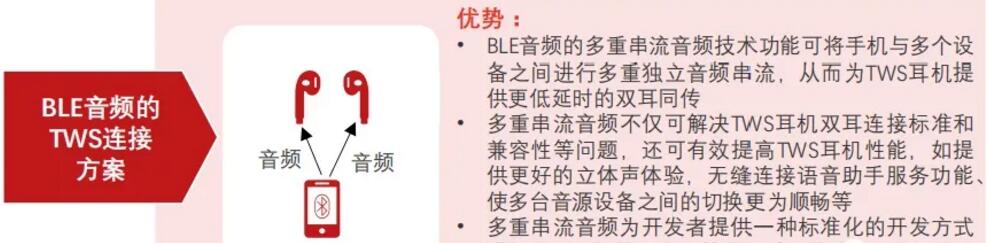 藍牙技術(shù)聯(lián)盟推出BLEA標準,BLEA標準的頒布打破蘋果TWS專利封鎖,解決TWS耳機雙耳直連的標準和兼容性問題,將釋放安卓TWS廠商生產(chǎn)力。
