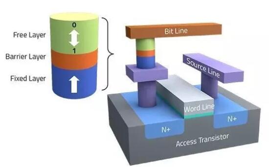 STT-MRAM是具有磁隧道結(MTJ)存儲器單元的單晶體管架構。它利用電子自旋的磁性在芯片中提供非揮發(fā)性特性。寫入和讀取功能在MTJ單元中共享相同的并行路徑。