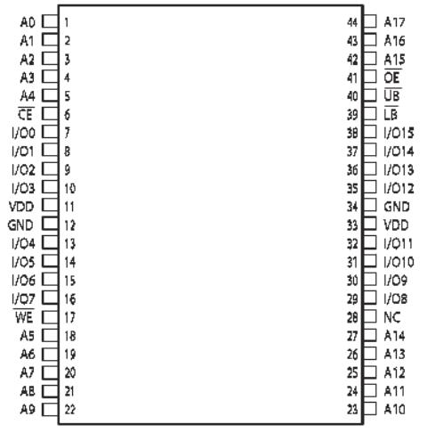 IS61LV25616AL含有以下封裝形式: JEDEC 標準44腳400-mil SOJ.44腳TSOPTypelI.44 腳LQFP和48腳MiniBGA(8mmX10mm)。
